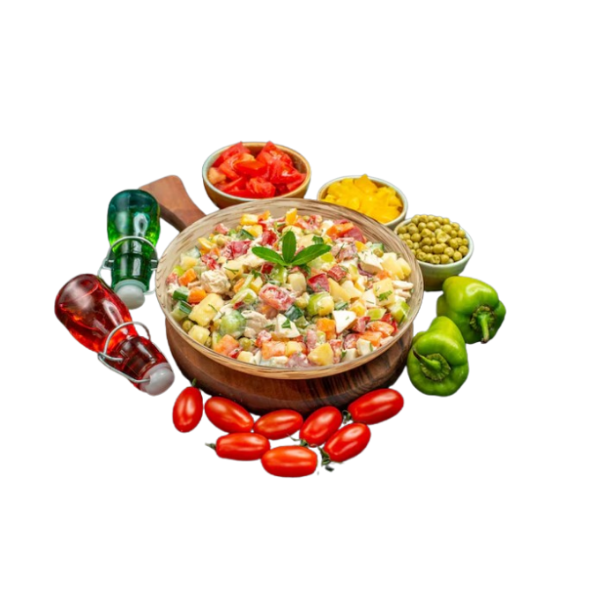 Mit Sauce Auswahl .Gemischter Salat, Thunfisch, Käse, Peperoni, Paprika