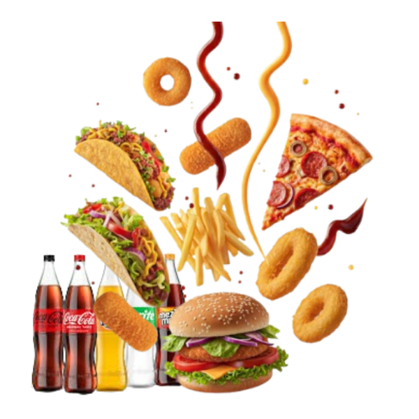 10 Stk Mix Fastfood box (Einzeln / Menü m. Pommes und 1 Getränk 0.33l + 0.15 € Pfan )