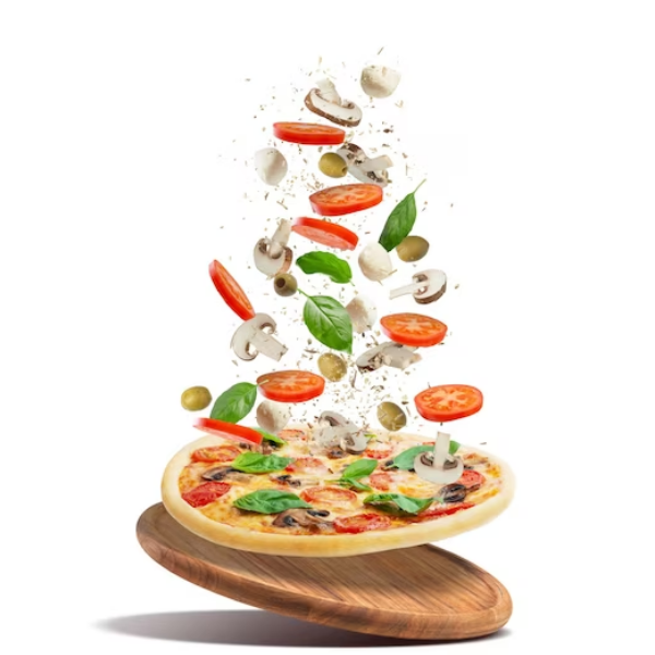 Mit Käserandfüllung – Soße nach Wahl .Champignons, Paprika, Zwiebeln, Oliven, Knoblauch, Tomaten
